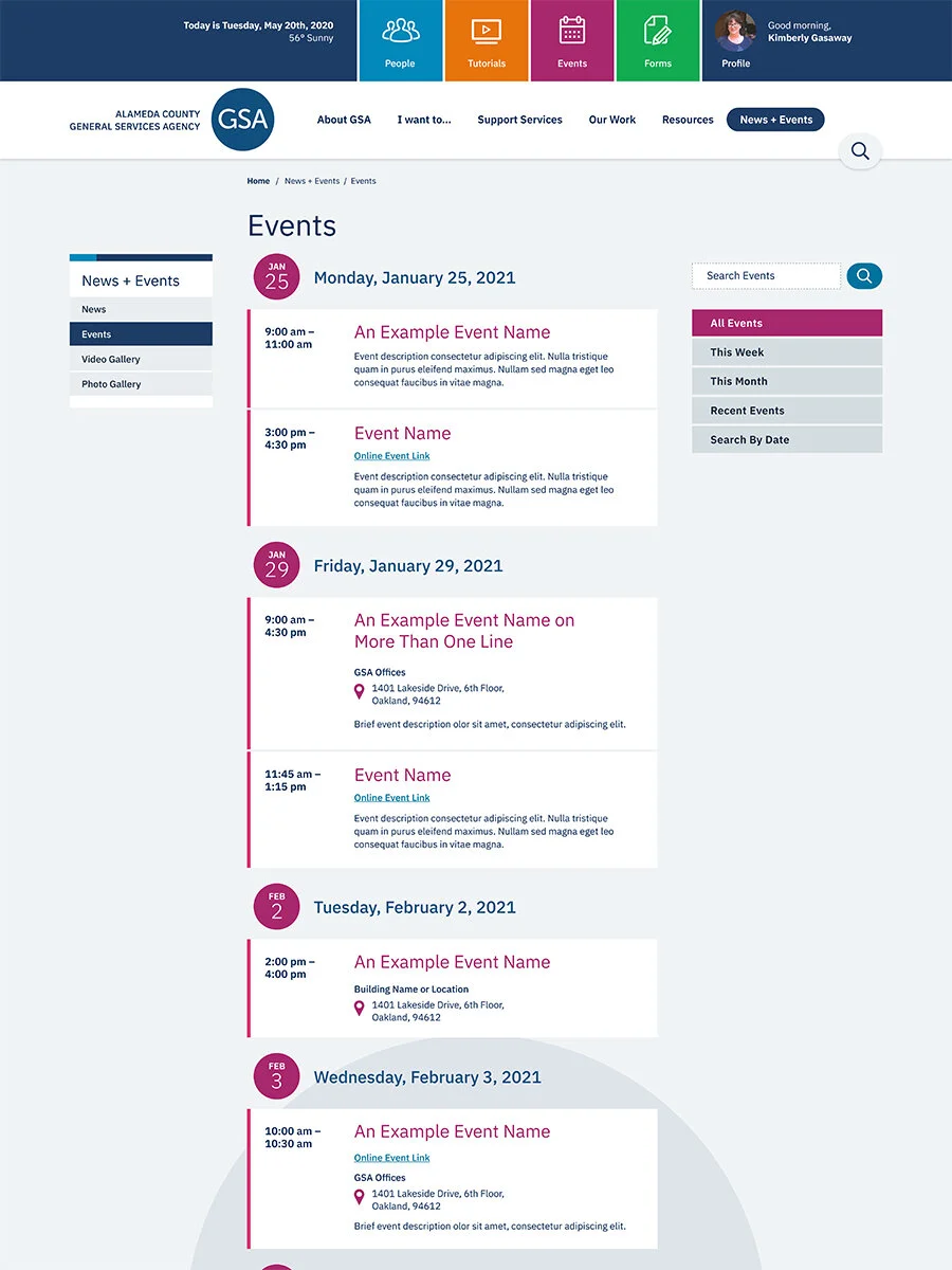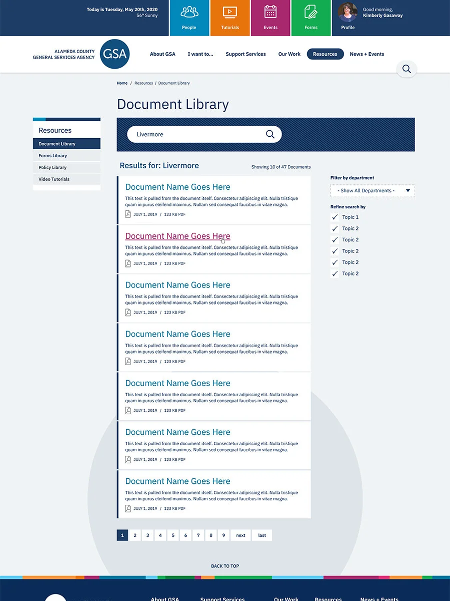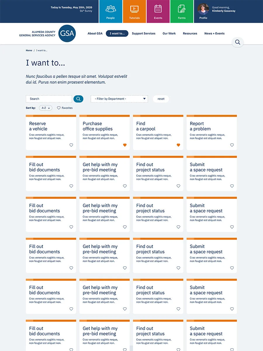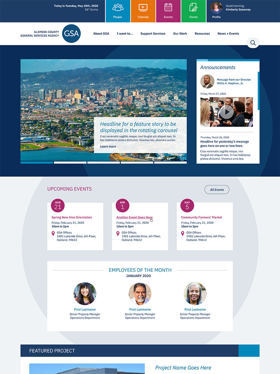 We were asked to create and design a new agency intranet. We met with many stakeholders and defined goals. This practice allowed for agency-wide buy in, something that had been missing from their previous efforts. This site is under development. Click images for full pdfs of desktop and mobile views.
